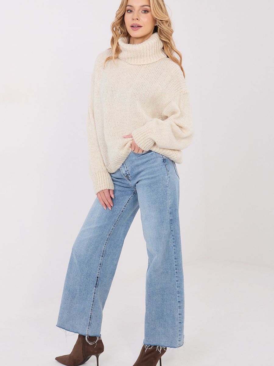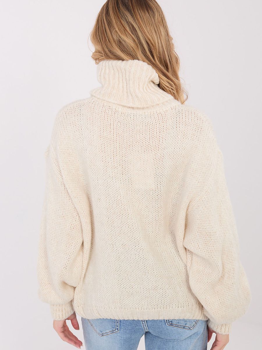 A loose women’s sweater with a turtleneck is an ideal proposition for everyday, casual stylizations. Made of a blend of acrylic, mohair, and nylon, it is soft, light, and pleasant to the touch, providing high comfort throughout the day. The model of standard length and long sleeves stands out with a varied texture of the material, which gives it a unique character, even though its dominant pattern remains smooth. The sweater has a turtleneck, which adds warmth and stylish finishing, while emphasizing its loose, casual cut. The lack of fastening makes it extremely comfortable and easy to style. It is a perfect choice for women who appreciate comfort, soft fabrics, and a fashionable, non-binding look.