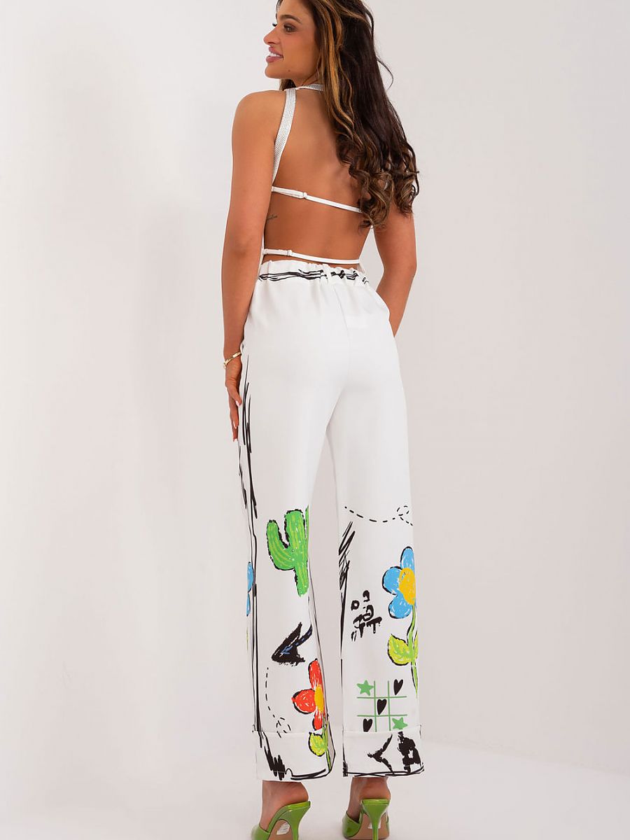 Imagine these pants, they are lively, full of energy and ready for any daily adventure. Made of comfortable polyester material, they are not only pleasant to the skin, but also durable and easy to care for. Their high waistband with elastic guarantees a perfect fit and comfort all day long. The wide legs add freedom of movement, giving the whole set a casual and nonchalant look. The side pockets, discreet and practical, allow you to effortlessly store your most necessary small items, such as keys or phone. But that’s not all that makes these pants special. Their colorful print adds character and style, giving a unique touch to any outfit. Whether you’re going for a stroll around town, out with friends or just shopping, these pants are the perfect choice for those who appreciate casualness, comfort and style.