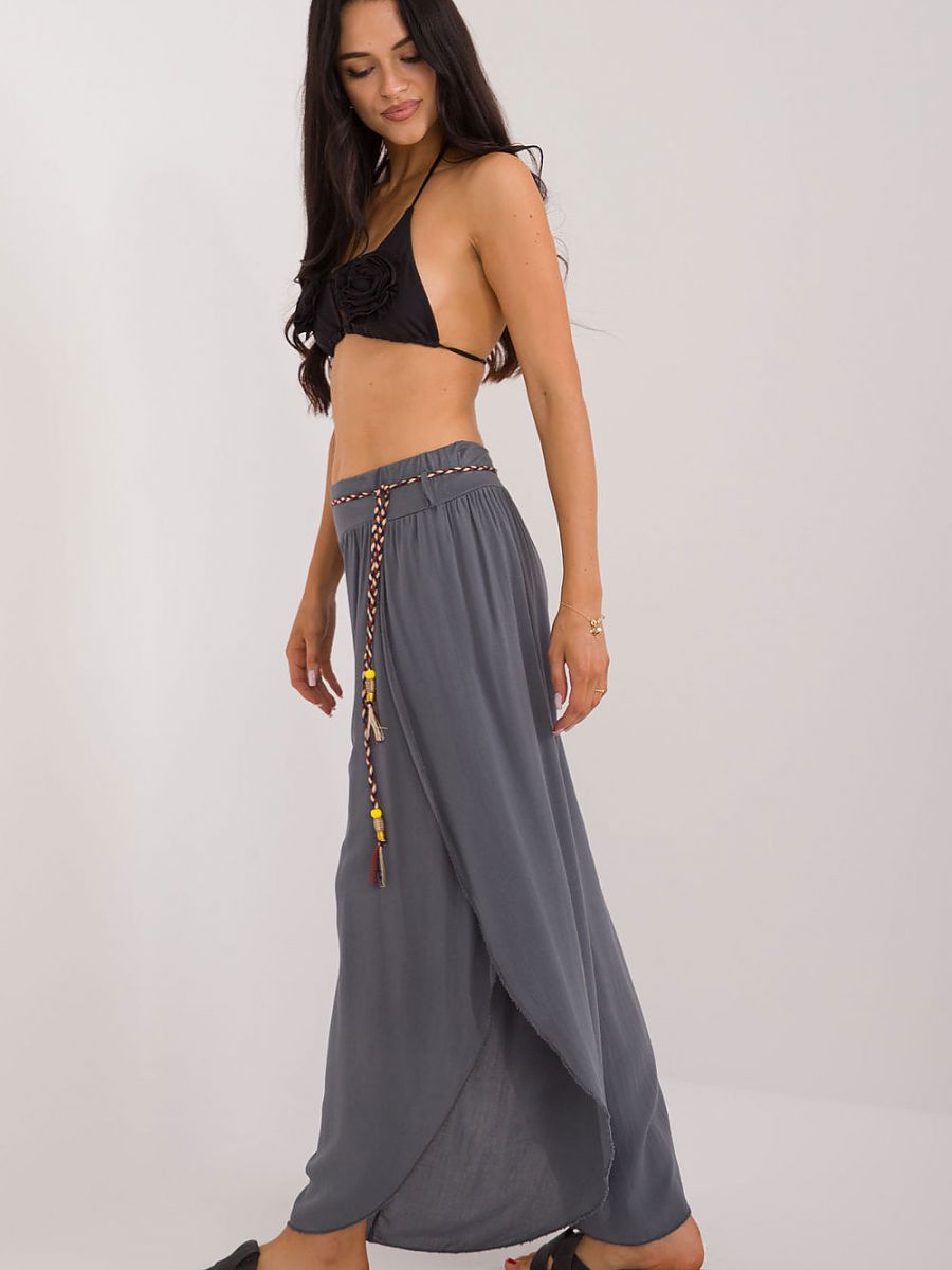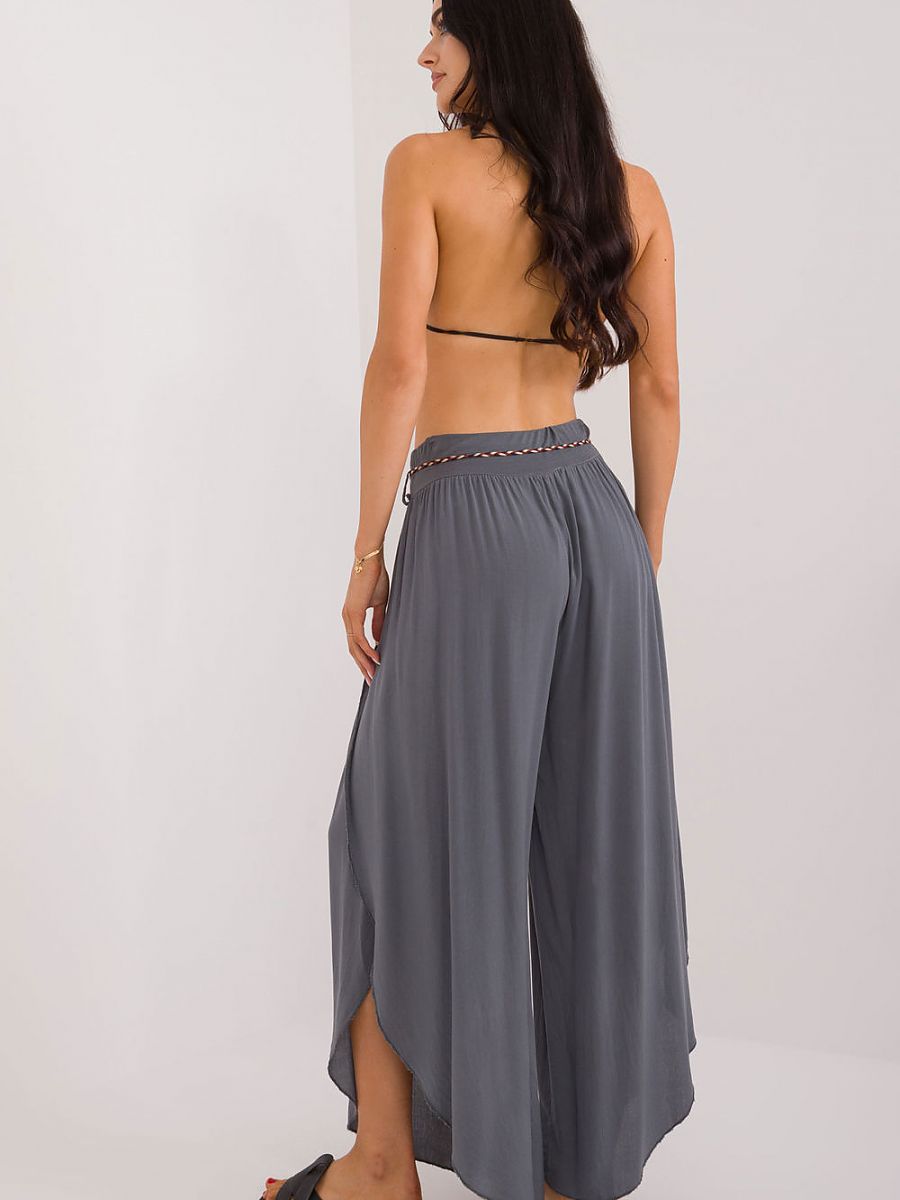 Seam pants are an excellent choice for everyday styling. Made of smooth material, with a high waist that accentuates the waist and provides comfort. Their wide legs with a slit give lightness and freedom of movement. The pants have a tie at the waist for a perfect fit to the figure. They feature a minimalist design without pockets, which adds to their elegance and simplicity. Perfect for casual get-togethers and everyday wear, the boho-style seamed pants are a comfortable and fashionable closet piece.