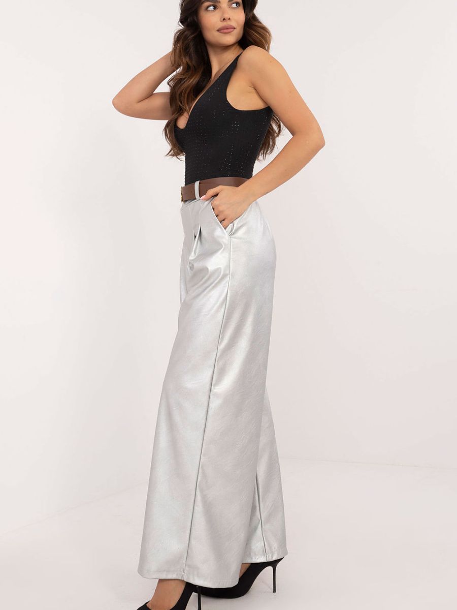 Eco leather pants are an excellent choice for women who want to combine elegance with everyday comfort. Ideal for work as well as everyday wear, these pants are distinguished by a minimalist, smooth design that is easy to match with different styles. Made of high quality polyester and viscose, they provide not only a stylish look, but also a comfortable fit. The high rise with sewn-in elastic at the back guarantees a perfect fit and comfort, while the wide legs give the pants a modern, fashionable character. The lack of a fastener makes them extremely easy to put on, and practical, slip-in side pockets add functionality. In addition, the buckled waistband allows for an even better fit at the waist. These insulated pants will be the perfect choice for colder days, combining elegance with everyday comfort and modern style.