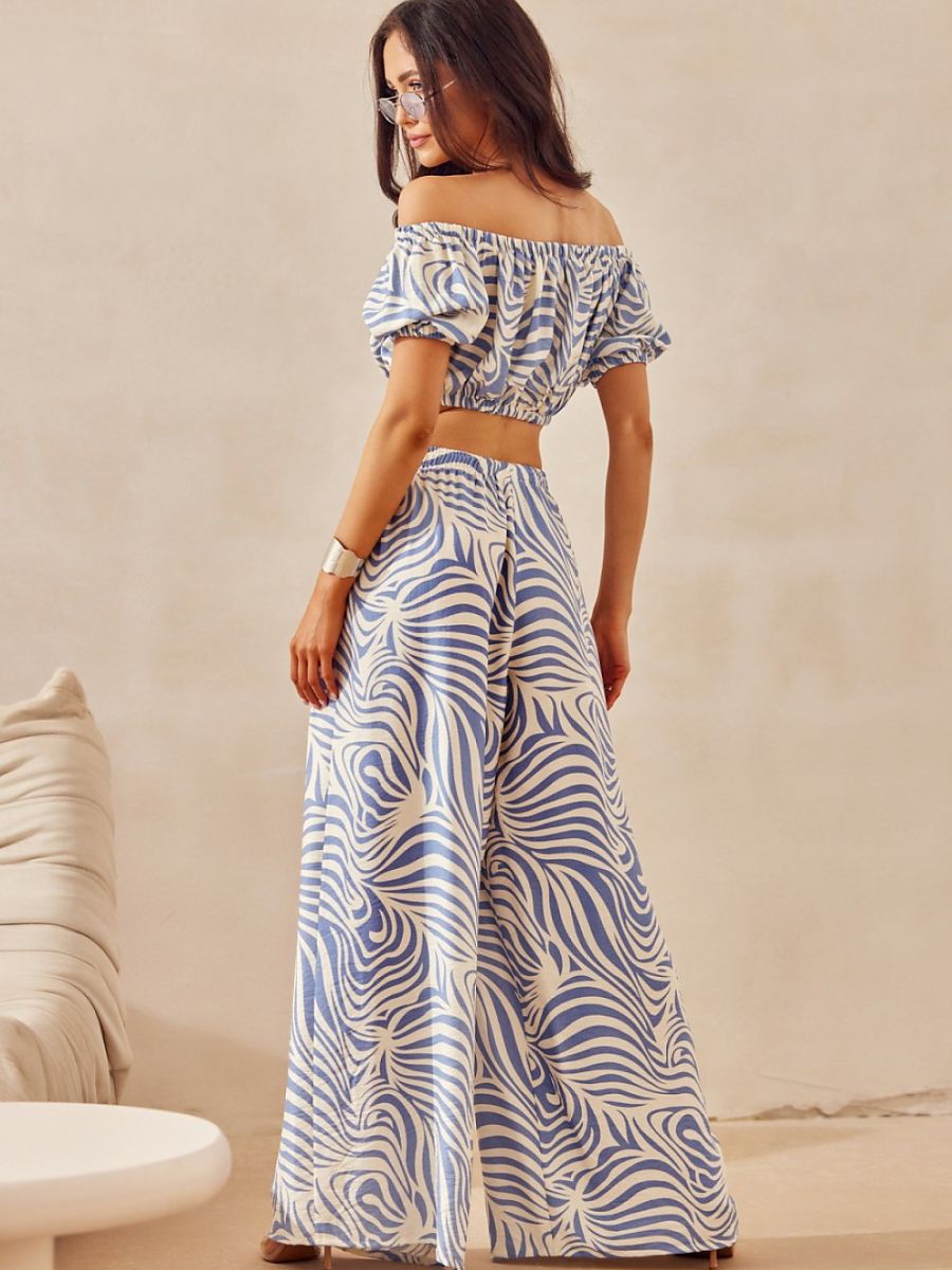 Wide-leg pants are a perfect choice for summer, combining trendy design with unparalleled comfort. Their loose fit makes them incredibly comfortable and breathable, while the wide legs flow freely with each step, giving the outfit lightness and feminine charm. The striking animal print gives them a bold character, making them an excellent base for creating both casual and more elegant outfits. Made from a blend of viscose and linen, these pants provide all-day comfort, and their natural properties make them an ideal choice for warm days. An additional advantage is the comfortable elastic waistband, which subtly adjusts to the silhouette, providing comfort without pressure. These pants are a combination of style, functionality, and lightness, perfect for summer walks and vacation trips. Thanks to their versatility, they will suit different styles, from casual to more elegant, adding a fresh and trendy accent to each of them. The product is designed and sewn in Poland.