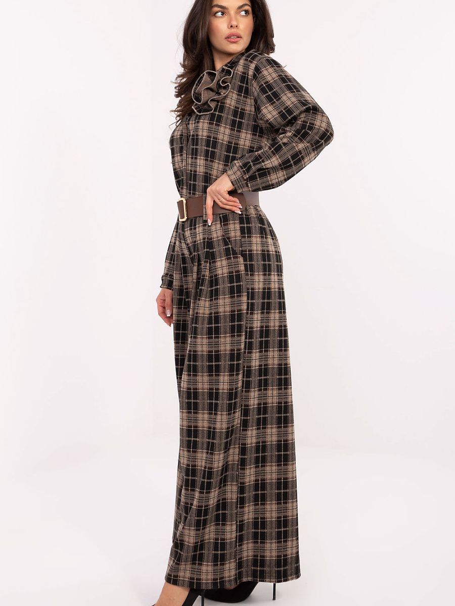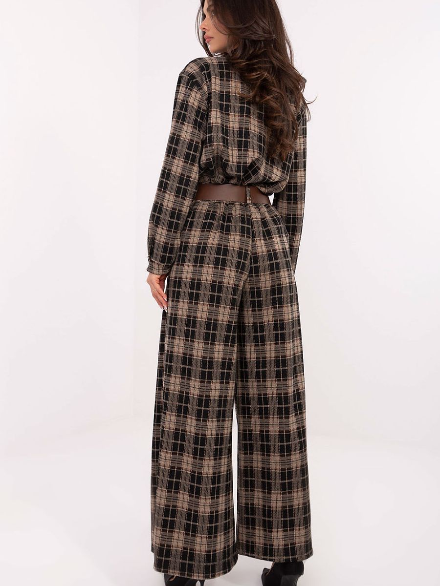Modern and comfortable women’s flannel palazzo pants with a casual character, perfect for everyday styling. Made of high-quality polyester, viscose, and elastane blend, they provide comfort, lightness, and delicate elasticity, making them fit the silhouette perfectly. The model has a high waist and wide palazzo-style legs that visually lengthen the legs and give the silhouette lightness. Side, inserted pockets and a fastened belt add practicality and allow you to emphasize the waist. The pants have a checkered pattern, which introduces a classic, timeless accent, and the lack of fastening makes them extremely comfortable and easy to use. This is a versatile model that will work perfectly in both everyday, casual stylings and in more elegant work outfits.