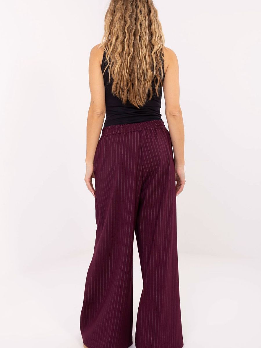 Stylish women’s palazzo-style trousers are an excellent choice for everyday wear, work, and formal occasions when elegance and modern form are important. Their subtle striped pattern visually slims the silhouette, while also giving the trousers an elegant, classic character. The model is made of high-quality blend of nylon, viscose, elastane, and polyester, making the trousers light, breathable, flexible, and comfortable to wear. The high waist beautifully accentuates the waist, and the wide palazzo-style legs give the whole outfit a casual yet very elegant line. Decorative pleats on the front upper part add a unique character to the trousers and subtly emphasize the elegant style. The practical zipper and button closure ensure comfort and a stable fit. These trousers combine timeless style with a modern cut, perfect for women who appreciate elegance, comfort, and refined details.