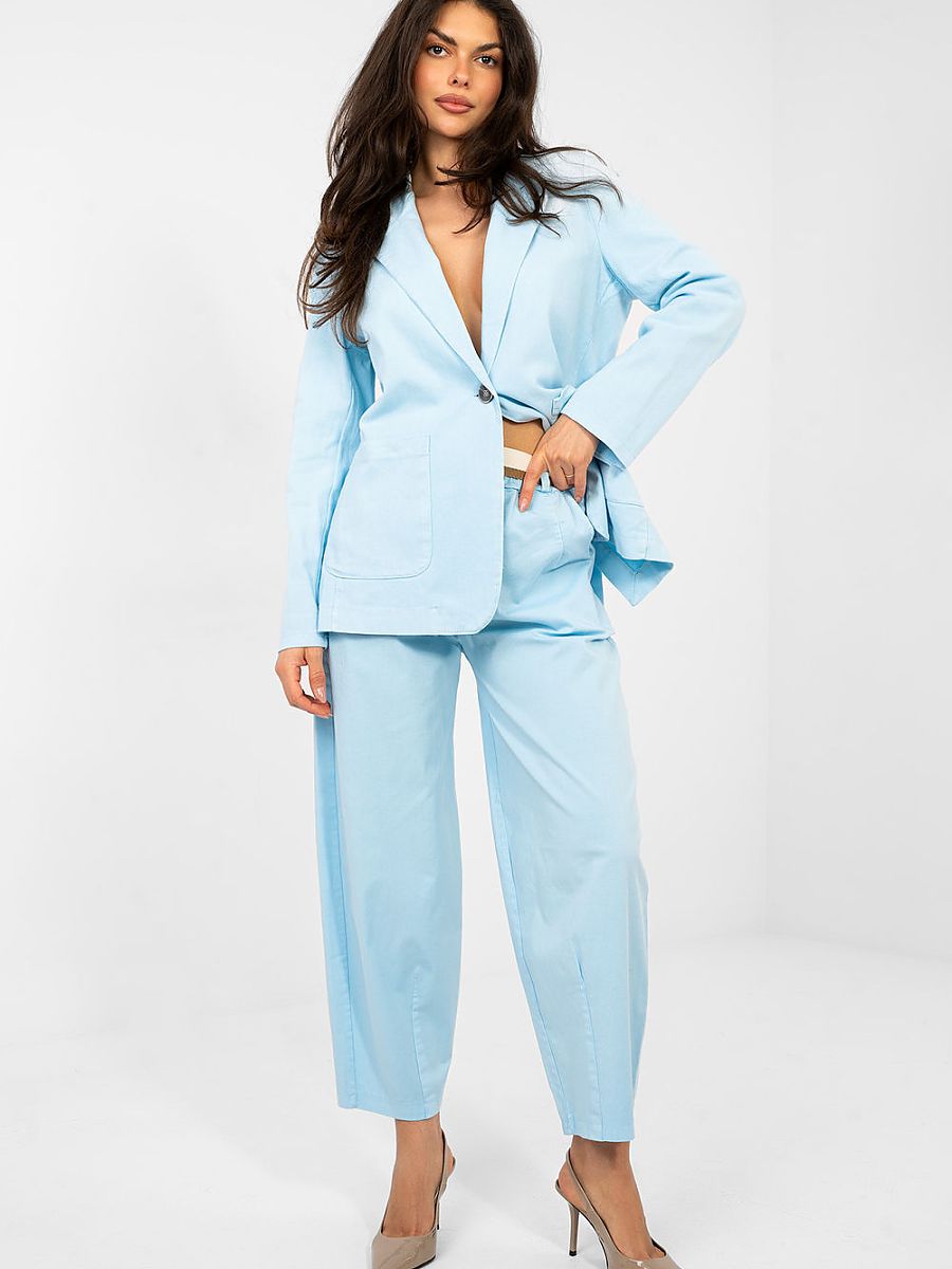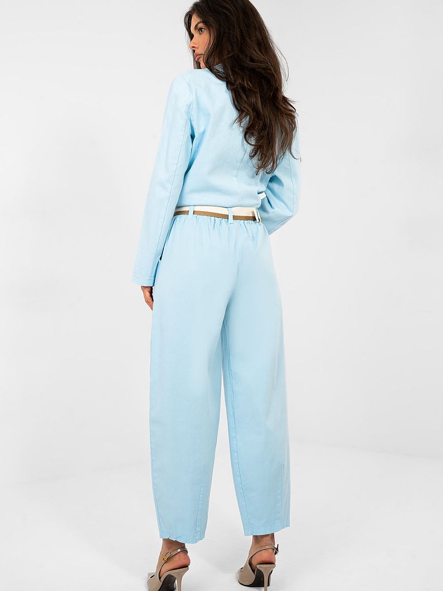 Comfortable and stylish carrot-cut trousers, perfect for everyday casual styling. Made of high-quality cotton with a hint of elastane, ensuring comfort and lightness of wear as well as subtle flexibility. The trousers have a high waist, tapered legs reaching 7/8 length, giving them a modern character. There is an elastic band at the waist, and additionally the trousers are equipped with a belt with a fastening option, allowing for a perfect fit. Practical side pockets increase functionality, and a smooth pattern makes it easy to combine them with various wardrobe items. These trousers are an excellent choice for those who value comfort, freedom of movement, and a modern casual look.